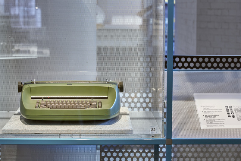The open wall frame allows the curation of objects into curatorial stories and also frames views out of the exhibition into the wider context of the Museum. The table top, set to the height of a domestic table, allows visitors to view ‘household’ objects, typewriters, personal computers and printers in a familiar relationship to the user. The language of both of these display systems is simple, geometric and neutral, with an effortlessness approach to allow the objects to inhabit them without competition. Both elements are modular for future adaptation and re-use.