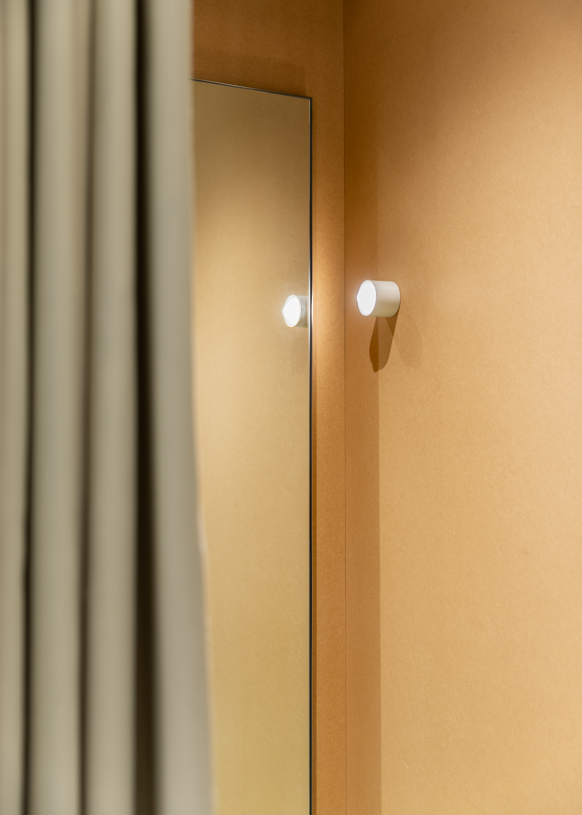 Exploration of typical customer journeys helped to define men’s, women’s and shared zones, with the point of sale providing the central anchor point, and folded perforated ceiling panels overlaying a geometric rigour above. A flexible custom-designed perimeter wall system defines the retail space from the lounge and support spaces, whilst also acting as an adaptable gallery on which to facilitate easy, intuitive and legible merchandising.