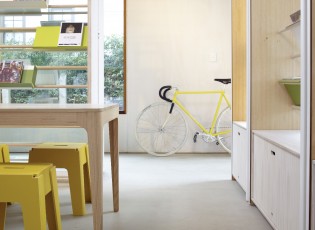 Destroyed by fire in 2011, the charred shell of the anchor tenancy provides a dramatic backdrop to new interior elements. The ground floor bakery is defined by a complementary palette of bluestone, galvanised steel and leather, its open kitchen flanking a galvanised steel stairway to the underground bar. Here, dark interiors and selective lighting create an ambience distinct from the bakery above, complete with a rolled steel bar and canopy lined in red Alicante marble.