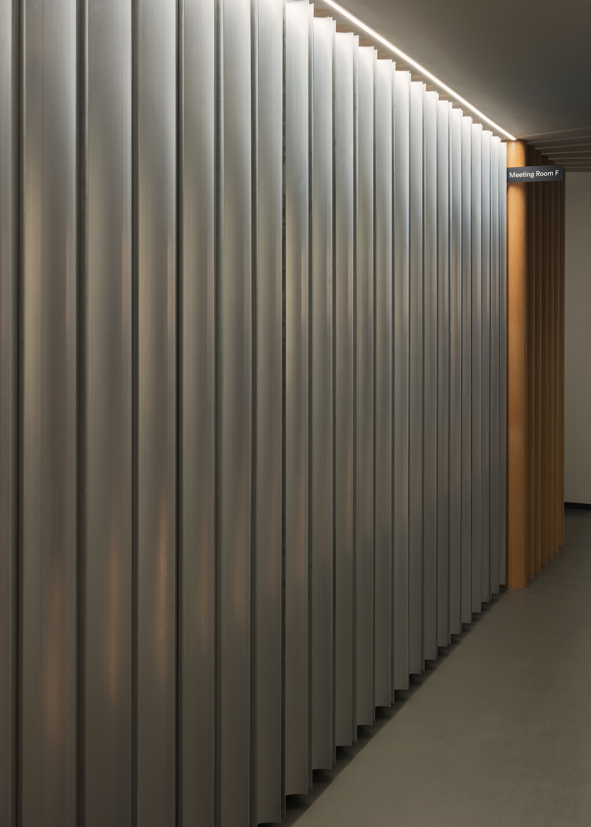 The reception, café and bar are set against the backdrop of the original granite walls and picture windows overlooking the Great Space beyond. A human-scaled layer is introduced through smoked oak counters, timber parquet flooring and a carefully considered suite of furniture and joinery.